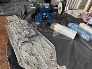 It required a lot of work with the polishing machine and some different polishing pastes to remove the course surface. I should probably have had another more course polishing paste to start with that was more abrasive to the surface. I got really tired as well since I had to hold the machine with one hand and the chassis with the other hand to create a the friction needed. I probably did this for an hour and it was hard to see if this was enough and when to stop. I could probably have gone on for another hour, but I was tired in my hands.