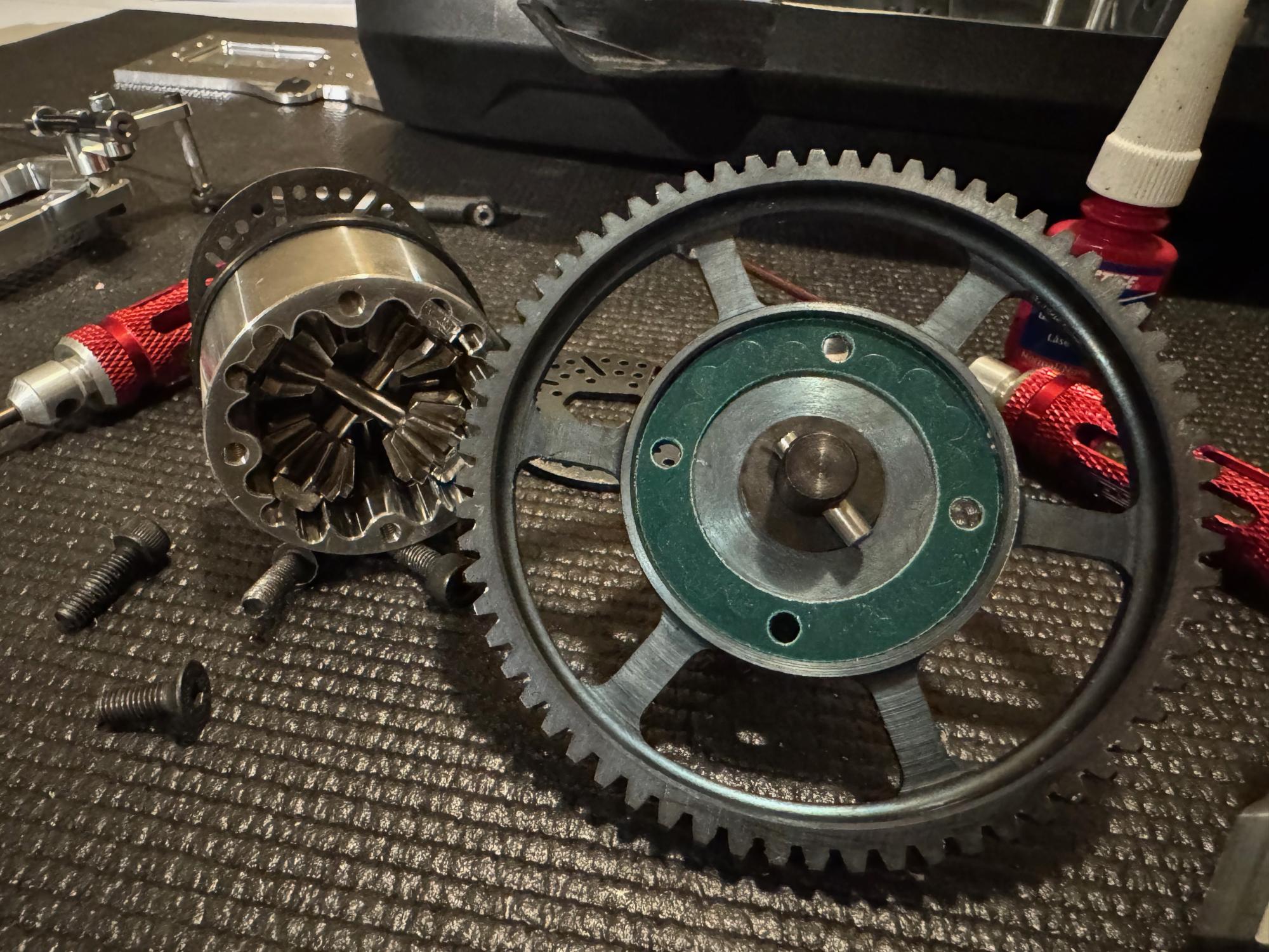 After the posts I went on to the mid diff and breaking mount. This is the center piece of the car and has some different mechanics.