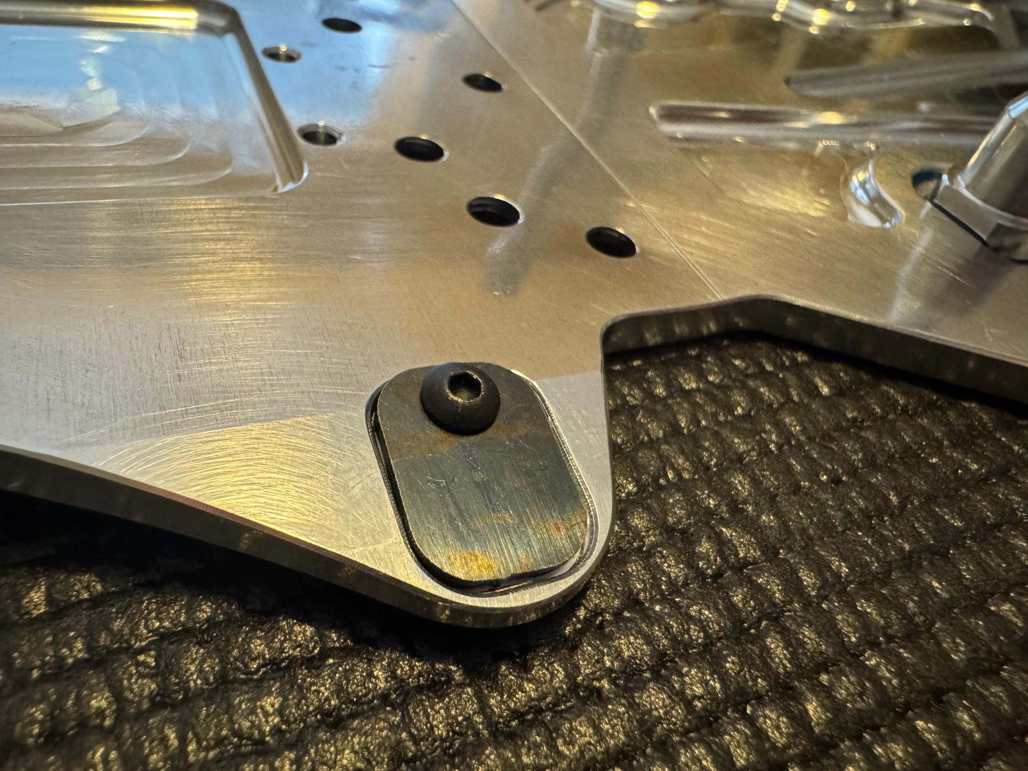 The last little pieces I mounted in this first round was the small steel pieces for the droop screws. This is great to protect the chassis. Otherwise the droop screws will eat into the chassis and you have to adjust your droop to adjust for this.