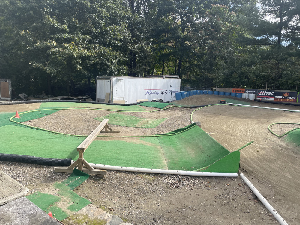 Outdoor dirt track and full hobby shop.