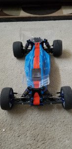 B4 Team Car with a Reaper RC T4.2 aluminum chassis, JConcepts carbon front tower, 8-Racing carbon rear tower (1 of 3 in the USA)(I own 2), all metal drive train, carbon steering rack, avid motor centering, RevDesign slipper, all aluminum hubs, 12mm hex all around, carbon arms…… the weird thing is…. With the T4.2 chassis, it's wheelbase is the exact same as my current B6.2….. 🤷♂️