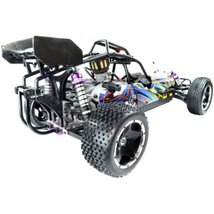 The Yama Buggy has a stunning look with oil filled colour coordinated suspension shocks. The suspension will provide you with a superb feel on uneven surfaces. The Yama Buggy is built up with multiple aluminium parts. With this high quality buggy you are guaranteed to hit high speeds when driving. The acceleration of this buggy is very impressive and equipped with a responsive and reliable brake system; you will not need to worry about stopping when hitting high speeds. The buggy is set up with a 2.4GHz radio system with high performance - 17000 rpm engine and a special clutch system.