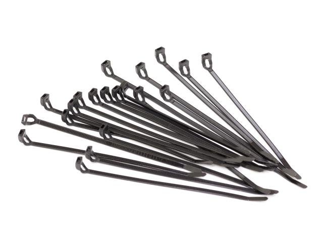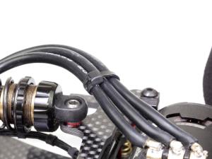 Low-Profile Cable Ties For those who care about wiring, the optimal solution for a beautiful, smart finish. Featuring a low, rounded head shape, these low-profile cable ties securely bundle cables for motors, batteries, servos, cooling fans, and more in a compact, safe manner. The head height is reduced by approximately 50% compared to conventional products, preventing snagging or interference with the chassis. No compromise on looks or function!