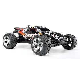 Best-in-class acceleration, 0-60mph in less than 4.2 seconds!Best-in-class top speed, 65+ mph!The TRX® 3.3 Racing Engine provides extreme power, brutal speed, and furious wheelie action.TQi™ 2.4GHz radio system with Traxxas Link™ Wireless ModuleTQi 2.4GHz High Output transmitterTraxxas Link™ Wireless ModuleFactory installed speed, RPM, and temperature telemetry sensorsAutomatically stores and loads settings for up to 30 Traxxas Link-enabled models—just switch on and drive, "model selection" is not requiredMulti-Function knobAdjustable steering and throttle percentage (dual rates)Adjustable steering and throttle sensitivity (exponential)Adjustable steering and throttle end pointsHigh 13ms frame rate and near-zero latency for responsive controlTQi 2.4GHz 5-channel micro receiver (#6518) with fail-safe security and integrated telemetry portsResonator™ blue-anodized aluminum tuned pipe is engineered with precision to enhance the performance of the TRX 3.3 Racing Engine.Front & rear sway bars provide superior handling and stability.Super-sticky 2.8-inch Anaconda™ performance tires deliver asphalt-hugging street traction.So fast, that the included wheelie bar is mandatory.Incredible body graphics match the performance and speed of Jato 3.3.Best in class suspension travel, 12mm more than other 2WD racing trucks!Adjustable internal two-speed allows unmatched acceleration and top speed without compromise.Sealed gearbox protects the two-speed and other sensitive transmission components from dirt and rocks.Sealed, limited-slip gear differential is fully tunable with standard silicone differential oils. Ball differentials simply can't compete for tunability, efficiency and reliability.Our engineers went to extreme lengths to develop the unique bellcrank steering system geometry that completely eliminates bump steer. An integrated servo saver protects the steering servo.Revo®-style Torque-Control™ slipper clutch uses semi-metallic pads and heat-dissipating finned aluminum alloy pressure plates for smooth linear engagement and consistent traction control.The semi-metallic brake disk provides smooth stopping power and virtually eliminates fade caused by heat build-up.The Traxxas EZ-Start® incorporates our latest revision of component and design technology to assure the most reliable operation. It is the only starting system to provide true, one-handed push-button engine starting. On-board diagnostics instantly troubleshoot any potential starting problems. EZ-Start is the safest and easiest starting system available.2amp DC Peak Detecting Fast ChargerThe low-profile 75cc fuel tank is mounted in the center of the chassis to promote superior chassis balance and handling dynamics.The TRX 3.3 Racing Engine is mounted in the middle of the chassis allowing near perfect side-to-side weight distribution.Double-shear connections are used on critical suspension linkage to prevent separation in a collision.True constant-velocity U-joint driveshafts use rubber seals to maintain smooth, trouble-free performance. These operate at the most extreme deflection angles and allow for the most suspension travel. Optional metal constant velocity driveshafts are available that reduce rotating mass for racing conditions.Tough, 3mm thick 6061 aluminum chassis plate is fully countersunk on the bottom, including the engine mounting screws.Removable roll hoop helps protect critical chassis components and serves as a convenient carry handle.Precision GTR™ (Revo®-style) shocks with composite bodies provide smooth, consistent damping performance. Threaded shock bodies allow precise ride height adjustment.Integrated "buggy style" dirt guards join with the body to form a tightly sealed barrier against dirt and rocks.Enclosed radio box protects sensitive electronics from dirt and fuel spills.Jato's exclusive 2-position receiver battery mounting (mid and rear) provides additional tuning options.Precision metric hex hardware is used throughout.Jato offers full suspension adjustability including caster, camber, toe, anti-squat, ride height, weight bias, and roll-center