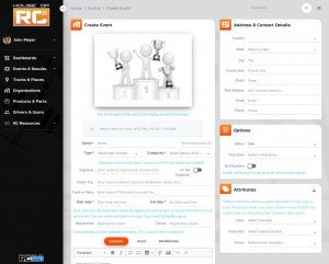Ange ett beskrivande namn som är enkelt att söka efter. Kan även rekommenderas att ange årtal om det är en årlig återkommande händelse. Ange typ (Type) “Race” anges för tävling men man kan även använda Practice för träning eller någon av de andra beroende på tillställning. Olika typer kommer tillgängliggöra olika fält. Ladda upp en bild för att dra uppmärksamhet och skapa en proffsig tävling.