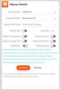House of RC ger dig stor frihet i hur anmälningsförfarande ser ut, vad som ska anges när man anmäler sig, vad som är obligatoriskt, hur man hanterar fulla klasser. För att se alla inställningar se avsnittet om anmälningsalternativ.