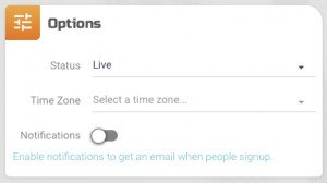 Används status för att tex sätta den i “Draft” läge medans du arbetar med den. Bara du kan se den tills du är nöjd och sätter den till Live. Används status Cancelled eller Postponed för tävlingar som blivit inställda eller uppskjutna av olika anledningar. Glöm inte att kommunicera med de som är anmälda, de kan ske genom meddelandefunktionen från “Entries” sidan.