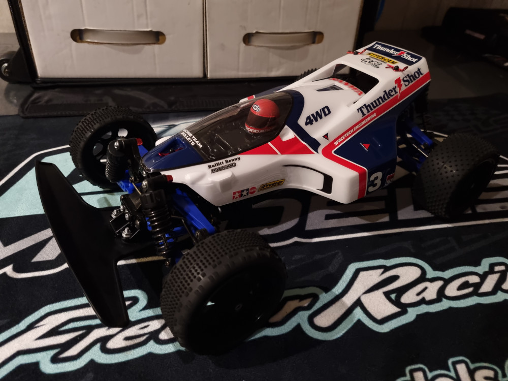 Final prep on my Tamiya Thundershot before racing it this weekend at Iconic Rc Revival hosted at Bingham Model Raceway.